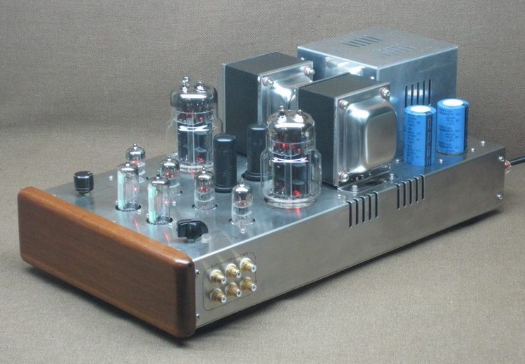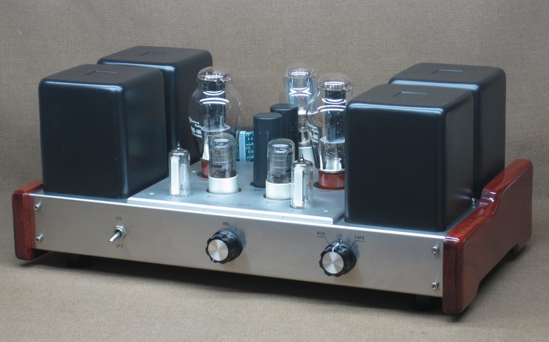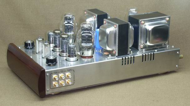 ●●采用优良的三极管6C5P作为前级放大,由宽频带高跨导五极管6P9P接成三极管作为推动级,取其有超强的推动力使300B的输出功率可达15W,功率充沛,力道十足,失真度低,音色甜美温醇,音质清澈透明,纯真细腻,声音非常好。音场的动态感和力度感都有出色的表现。